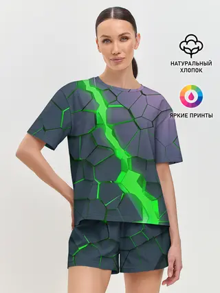 Женская пижама с шортами / ЗЕЛЕНЫЙ РАЗЛОМ | 3Д РАЗЛОМ