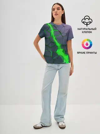 Женская базовая футболка / ЗЕЛЕНЫЙ РАЗЛОМ | 3Д РАЗЛОМ