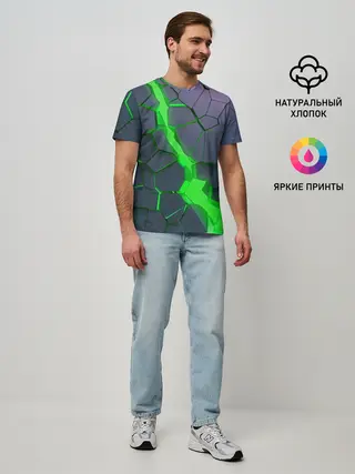 Мужская базовая футболка / ЗЕЛЕНЫЙ РАЗЛОМ | 3Д РАЗЛОМ