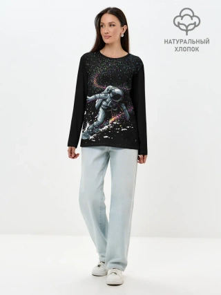 Лонгслив женский. Хлопок / Космический Сёрфинг