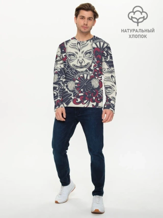 Мужской лонгслив базовый / Маска Кицунэ | Маска лисы