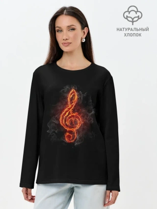 Лонгслив женский. Хлопок / Огненный скрипичный ключ
