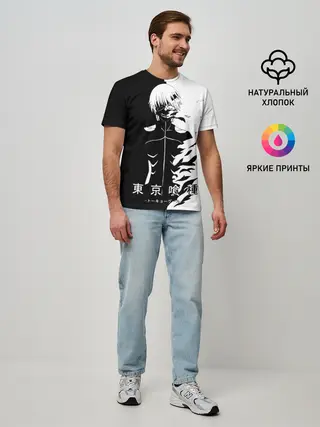 Мужская базовая футболка / Токийский гуль черно белый Кен