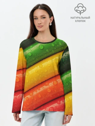 Лонгслив женский. Хлопок / Цветные линии