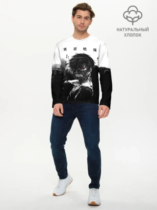 Мужской лонгслив базовый / Канеки Кен черно-белый