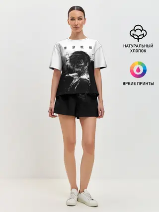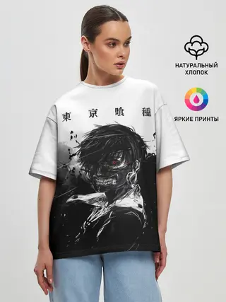 Женская футболка оверсайз / Канеки Кен черно-белый