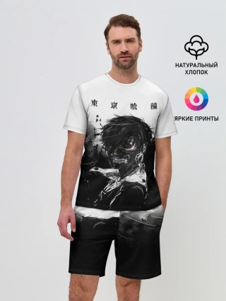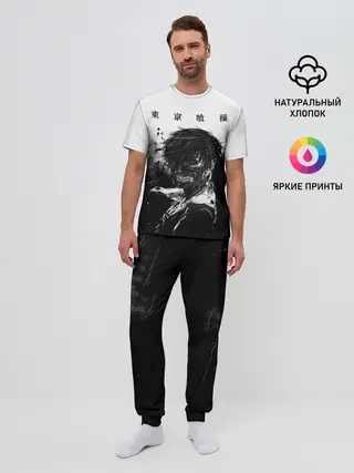 Мужская пижама с брюками / Канеки Кен черно-белый