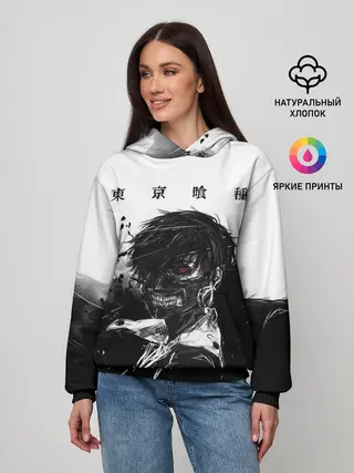 Женское худи / Канеки Кен черно-белый