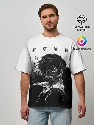 Мужская футболка оверсайз / Канеки Кен черно-белый