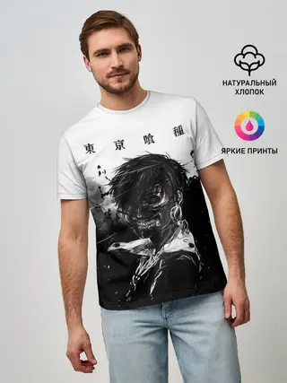 Мужская базовая футболка / Канеки Кен черно-белый