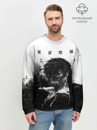 Мужской свитшот базовый / Канеки Кен черно-белый