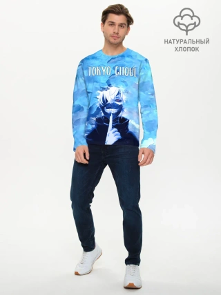 Мужской лонгслив базовый / Kaneki Ken на синем фоне