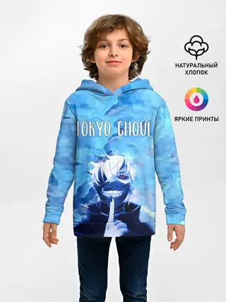 Худи мужской база хлопок / Kaneki Ken на синем фоне