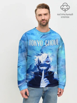 Мужской свитшот базовый / Kaneki Ken на синем фоне
