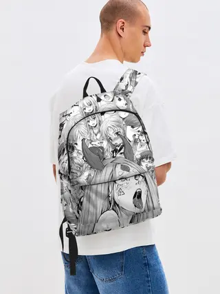 Рюкзак джинсовый / KAGUYA AHEGAO чернобелое / КАГУЯ АХЕГАО