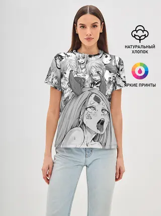 Женская базовая футболка / KAGUYA AHEGAO чернобелое / КАГУЯ АХЕГАО
