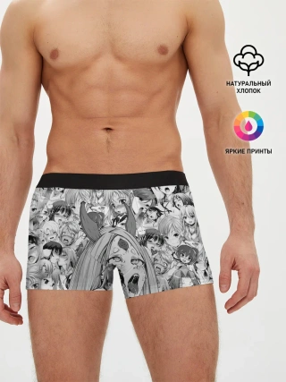 Мужские трусы боксеры / KAGUYA AHEGAO чернобелое / КАГУЯ АХЕГАО