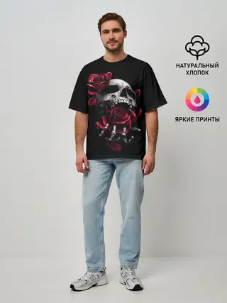 Мужская футболка оверсайз / ЧЕРЕП И РОЗЫ