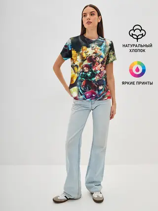 Женская футболка оверсайз / КЛИНОК РАССЕКАЮЩИЙ ДЕМОНОВ ПЕРСОНАЖИ