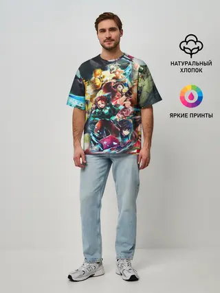 Мужская футболка оверсайз / КЛИНОК РАССЕКАЮЩИЙ ДЕМОНОВ ПЕРСОНАЖИ