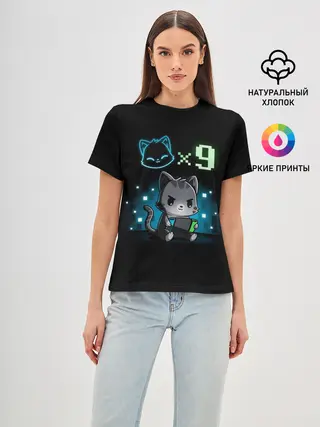Лонгслив женский. Хлопок / У меня 9 жизней