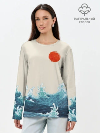 Лонгслив женский. Хлопок / Японский Стиль Волны и Солнце