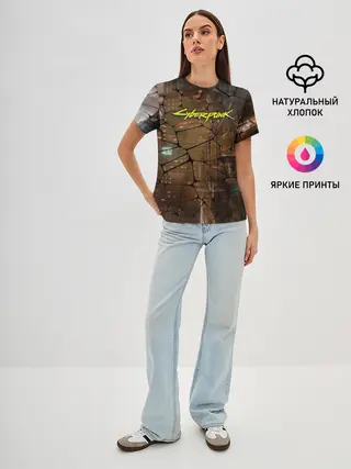 Женская базовая футболка / Киберпанк - Город в паутинке