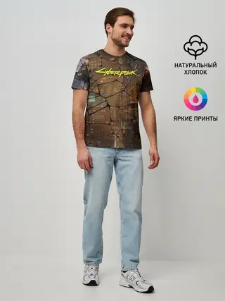 Мужская базовая футболка / Киберпанк - Город в паутинке