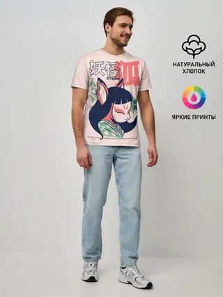 Мужская футболка оверсайз / Anime Kitsune Demon Yokai