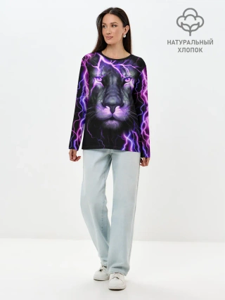 Лонгслив женский. Хлопок / НЕОНОВЫЙ ЛЕВ / NEON LION