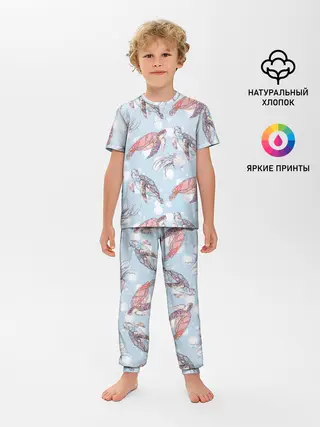 Детская пижама с брюками / подводный мир черепахи медузы