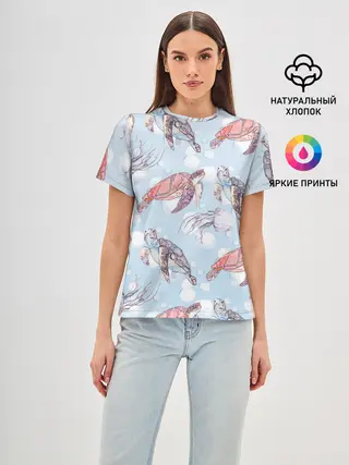 Женская футболка оверсайз / подводный мир черепахи медузы