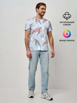 Мужская базовая футболка / подводный мир черепахи медузы