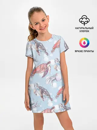 Детское платье / подводный мир черепахи медузы