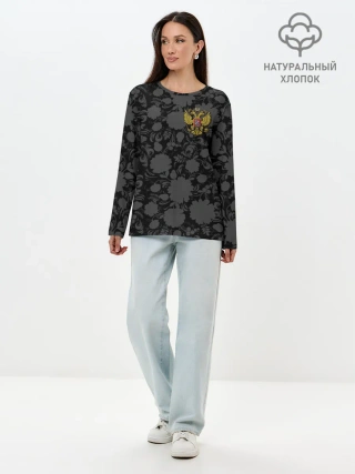 Лонгслив женский. Хлопок / Герб России Хохлома