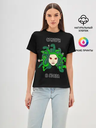Женская базовая футболка / Медуза Горгона, Смотри в глаза
