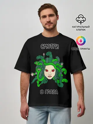 Мужская футболка оверсайз / Медуза Горгона, Смотри в глаза