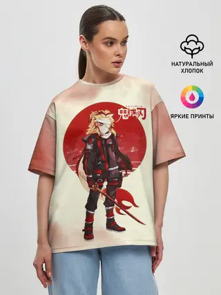 Женская футболка оверсайз / Кенджиро Ренгоку Kimetsu no Yaiba