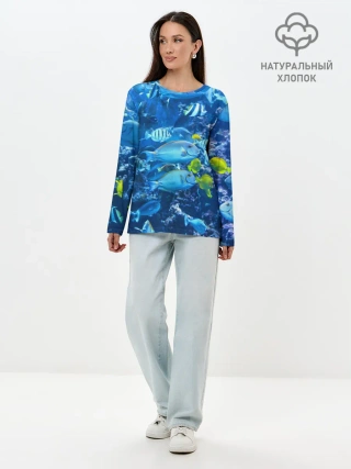 Лонгслив женский. Хлопок / Коралловые рыбки
