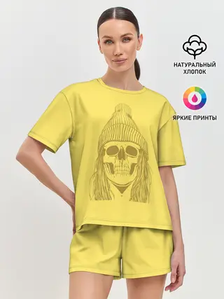 Женская пижама с шортами / Черно БелЫй ЧереП