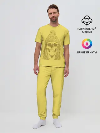 Мужская пижама с брюками / Черно БелЫй ЧереП