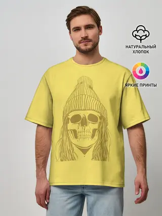 Мужская футболка оверсайз / Черно БелЫй ЧереП