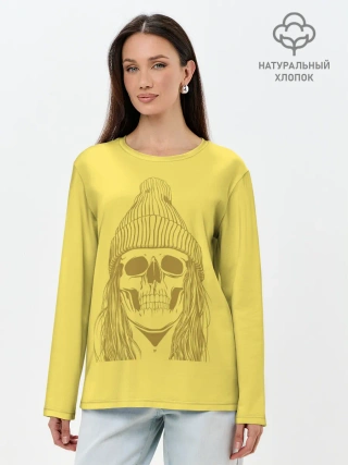 Лонгслив женский. Хлопок / Черно БелЫй ЧереП