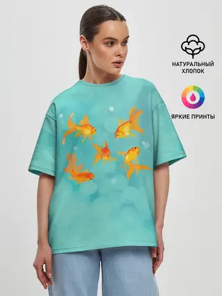 Женская футболка оверсайз / Золотые рыбки
