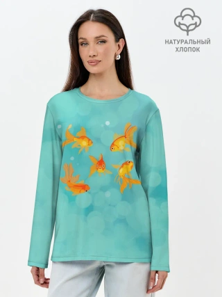 Лонгслив женский. Хлопок / Золотые рыбки