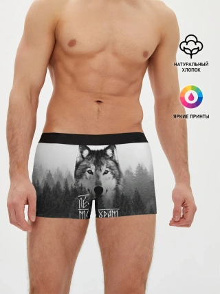 Мужские трусы боксеры / ЛЕС МОЙ ХРАМ / ВОЛК