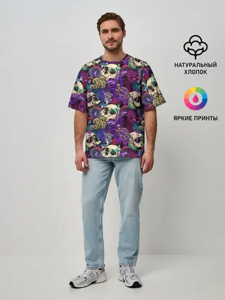 Мужская футболка оверсайз / Психоделика - черепа и грибы