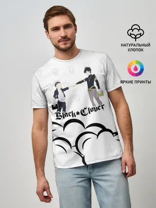 Мужская футболка оверсайз / Чёрный клевер Аста и Юно