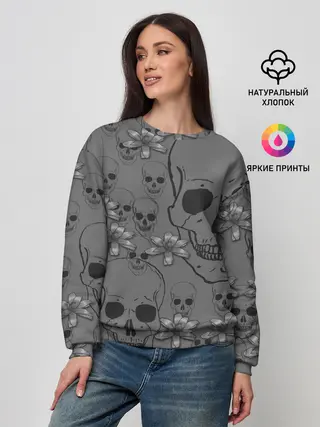 Женский свитшот / Цветы и черепа