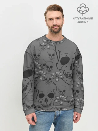 Мужской свитшот базовый / Цветы и черепа